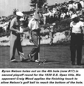 Most golfers have heard about Nelson’s eagle on the fourth hole that helped him win a playoff for the 1939 US Open, but very few know that he had made another eagle 2 earlier in the tournament in the third round. Playing with Olin Dutra, Nelson had holed out an 8-iron second shot on the par-four 3rd hole (now 16th).
