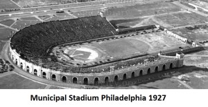 Municipal Stadium later named John F. Kennedy Stadium was demolished in 1992 to make room for more modern sports venues. The stadium was an open horseshoe. Tees with an elevation of forty feet were constructed at the South end of the field. A fairway, sixty yards in width, extended 422 yards.
