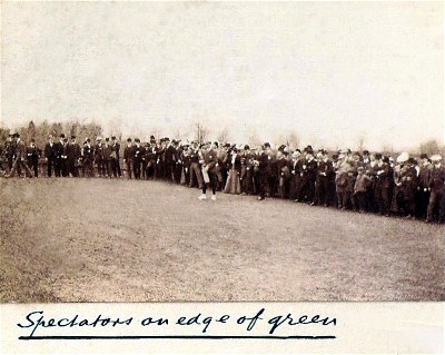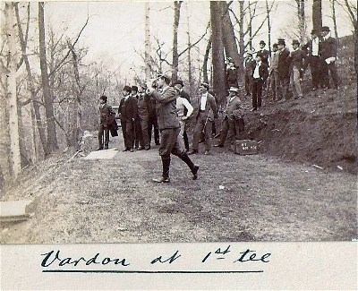 In 1900 Harry Vardon visited the United States for an exhibition tour. He was sponsored by the Spalding Company which was promoting its new golf ball, the Vardon Flyer. On April 21 Vardon was at the Philadelphia Country Club for one of those eighty-some exhibitions. His $250 fee was put up by the six golf clubs that made up the Golf Association of Philadelphia at that time. The six clubs were Belmont GC (later Aronimink), Huntingdon Valley CC, Merion Cricket Club (later Merion GC), Philadelphia Country Club, Philadelphia Cricket Club and St. Davids GC. He was opposed by two golf professionals, which were selected by the GAP. (Philadelphia Cricket Club’s Harry Gullane and Huntingdon Valley’s Willie Thomson) Vardon played their better-ball and won 1-up.