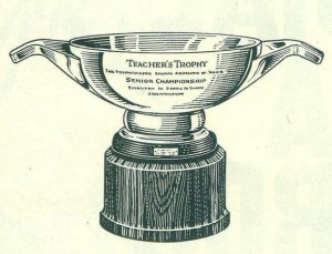 Terl Johnson won the medal at the Section Championship qualifying in late August. He shot a 68, missing the tournament record by one stroke. The defending champion, Clarence Ehresman, was exempt from the qualifying for 64 places on the match play ladder. Harry Obitz and Shawnee Inn & Country Club hosted the championship again. Two of the Section’s strongest players met in the finals with Rod Munday taking the measure of Henry Williams, Jr. The match was still even after the morning 18 but Munday, a notoriously poor putter, started making putts in the afternoon round and won the Bulletin Cup with a 2 & 1 victory. Munday putted right-handed, left-handed and cross-handed. Sometimes he did this all on the same green. In the semifinals Munday defeated Reading Country Club head professional Henry Poe 2&1 and Williams eliminated an old foe, Felix Serafin 6&4. The Philadelphia Section kept the stymie rule in effect for the tournament even though the USGA had decided to discontinue it at the end of that year. In the finals the stymie affected play on four holes with Williams being stymied three times. First prize was $500 and possession of the Evening Bulletin Trophy for one year. Williams won $300.